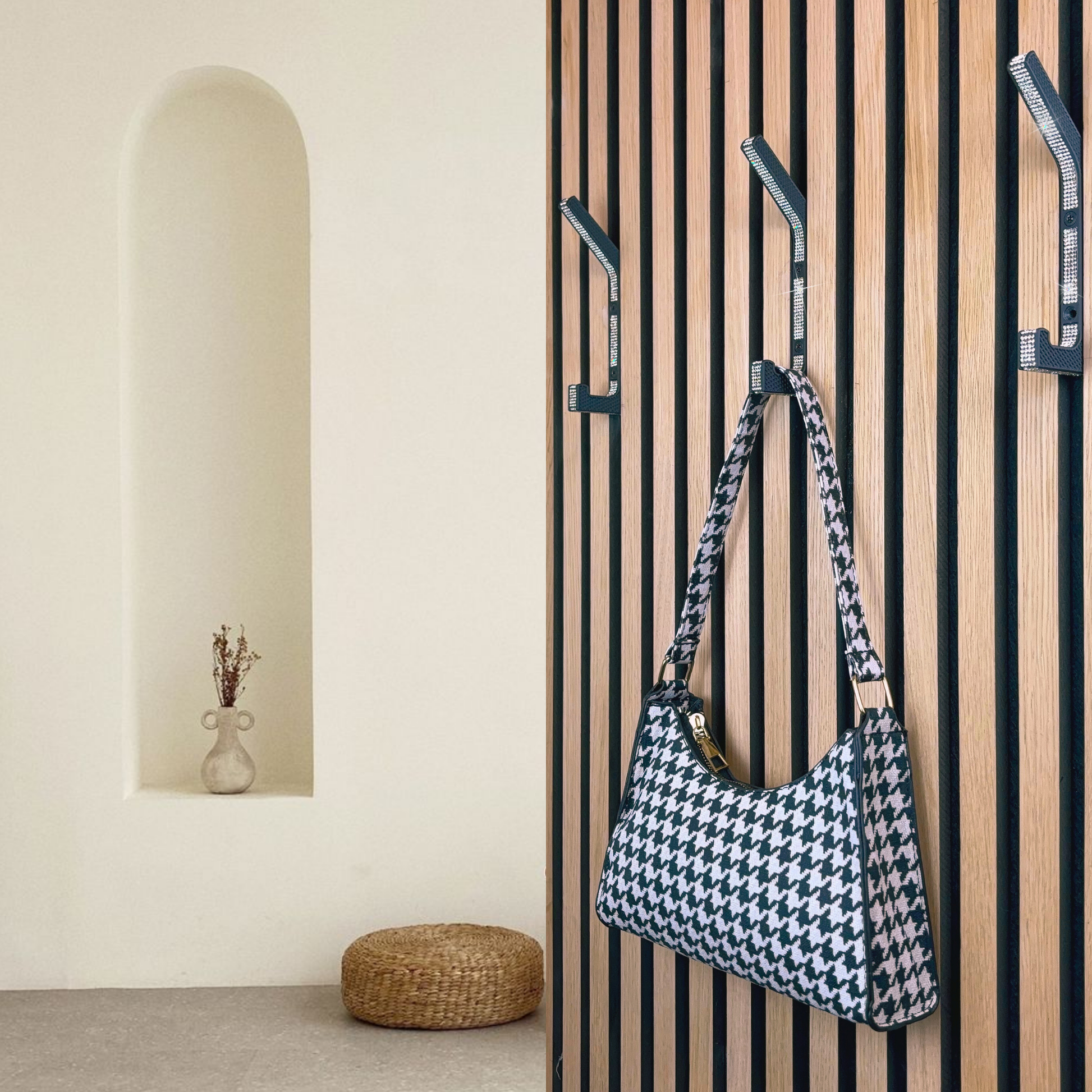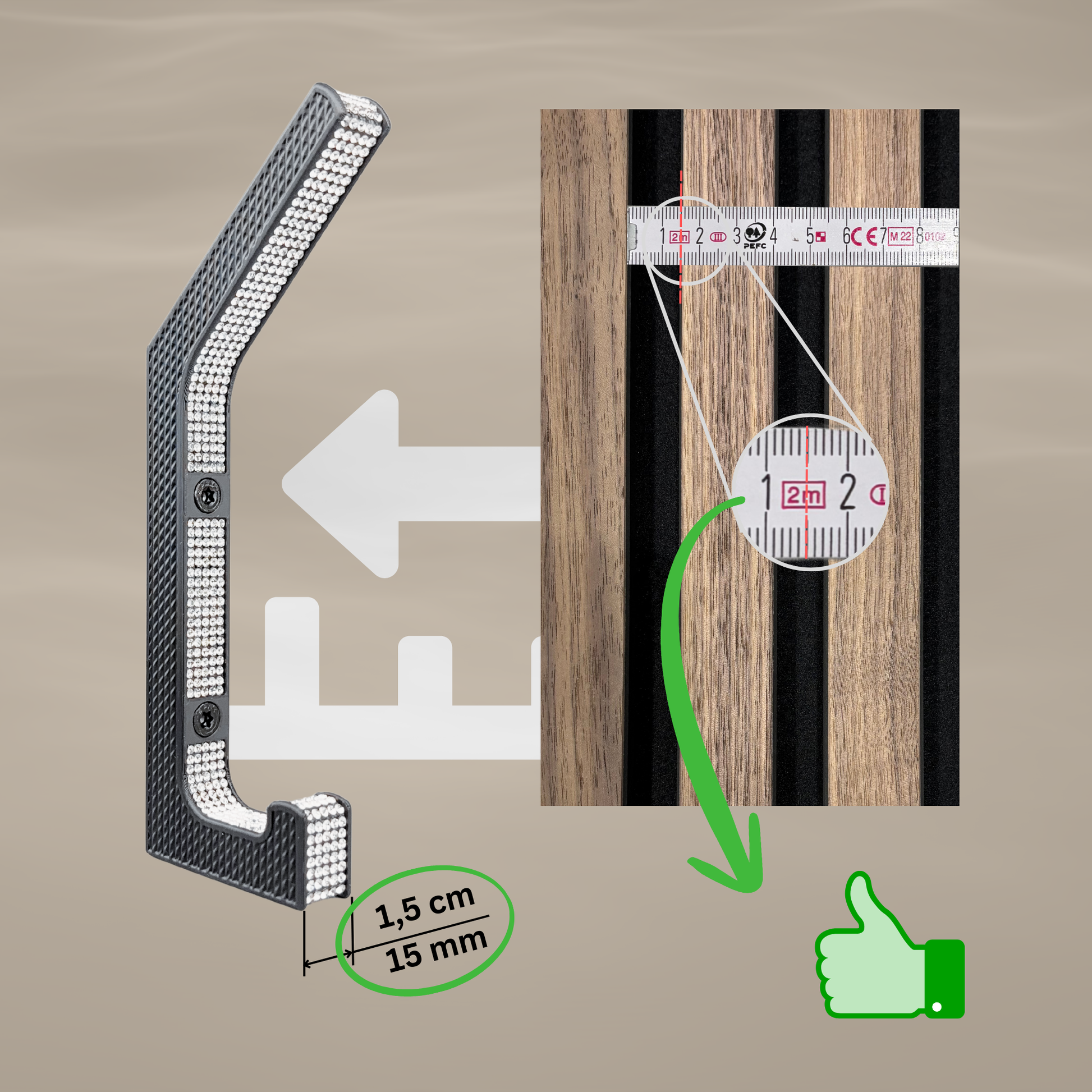 Ob Jacken, Mäntel oder Taschen – der Haken ist vielseitig einsetzbar und überzeugt mit starker Tragkraft und einfacher Montage: Passend für Wände und Akustikpaneele mit 13 mm oder 15mm Lamellenabstand, inklusive Bohrhilfe und Montagematerial. Das perfekte Accessoire für stilbewusste Räume – oder als edles Geschenk mit Wow-Effekt.